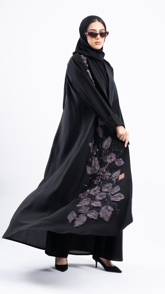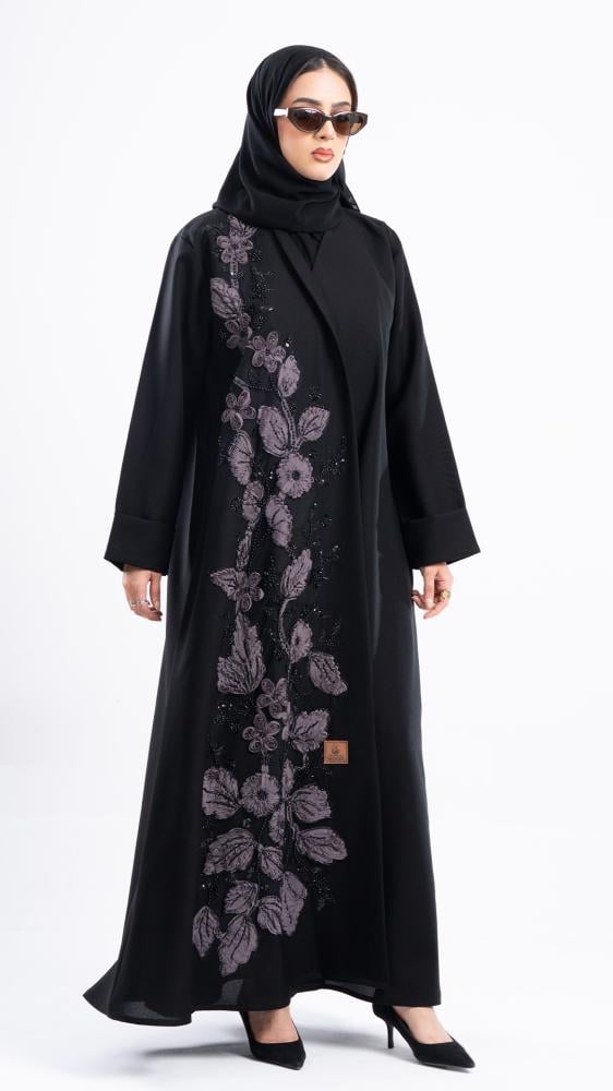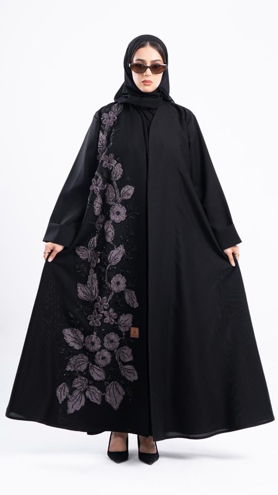بتصميم يخطف الأنظار مطرزة بورود ناعمة ومرصعة بشك كريستال فاخر من الأمام لمسة أنثوية أنيقة تناسب المناسبات الراقية وتُبرز حضورك بجاذبية راقية صممت بقصه انسيابية العباية ناعمة بالحركة لتلائم كل مناسباتك. مع طرحة مجانية وجربي تنسيقها مع فستان عباية