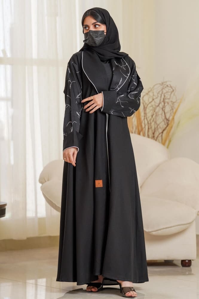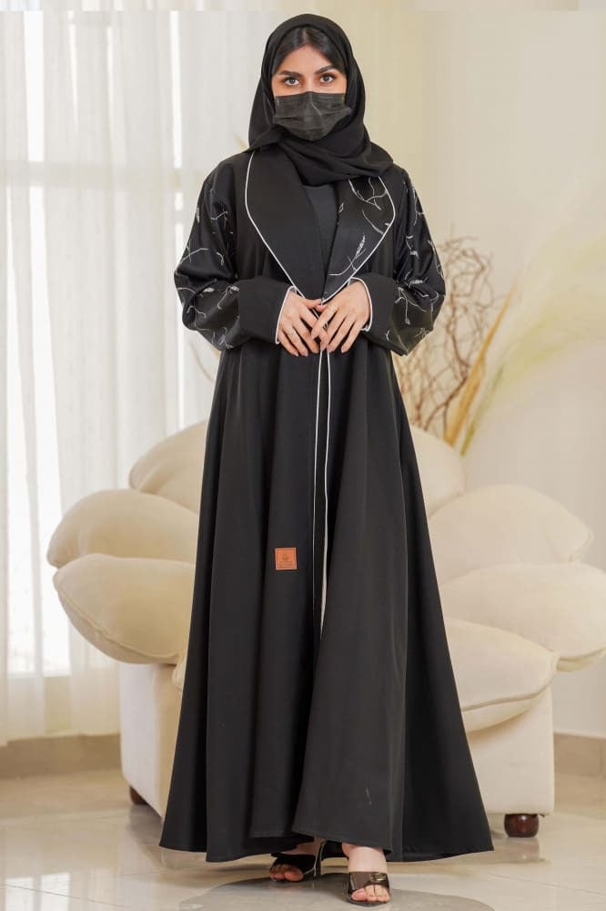 عباية بياقة واسعة مع تطريز السنبلة ع الياقة والاكمام