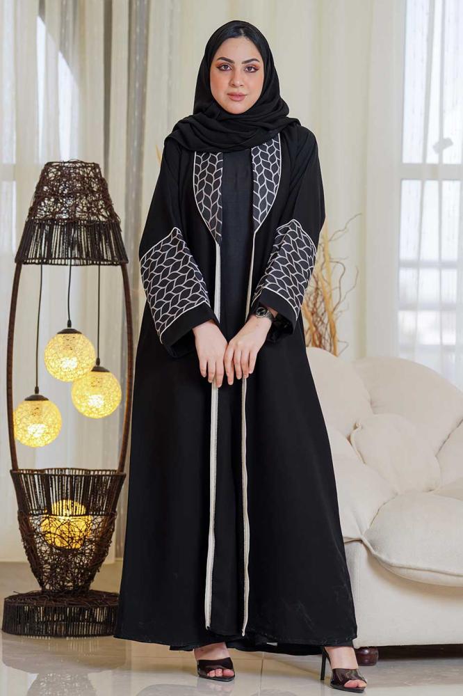 عباية كلاسيك بكم مربع مع تدخيلات قماش جاكار
