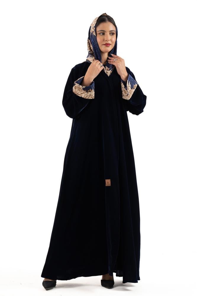 عباية وِداد شتوية منسوجة من قماش المخمل الكحلي مع تدخيلات قماش الحرير لالفرنسي على الأكمام صممت لتناسب الاستخدام اليومي والطلعات تصميمها الناعم يضفي لمسة من الجاذبية والرقي مما يجعلها مثالية للإطلالات المميزة صممت بقصه انسيابية العباية ناعمة بالحركة لتلائم كل مناسباتك الشتوية. مع طرحة مجانية وجربي تنسيقها مع فستان عباية