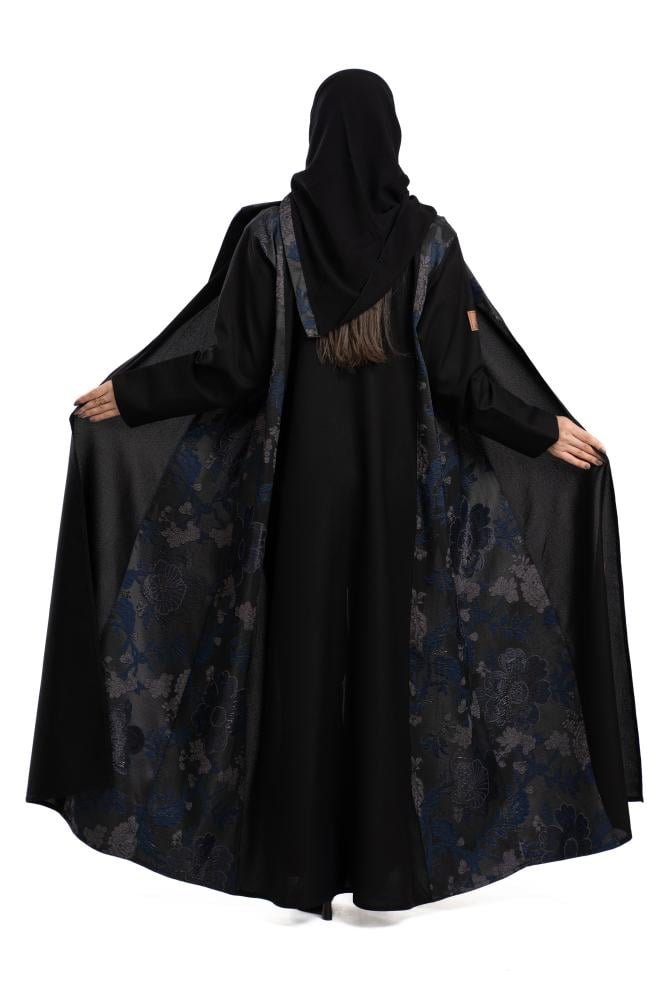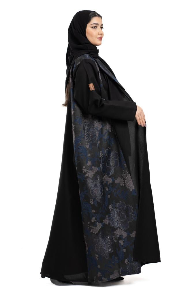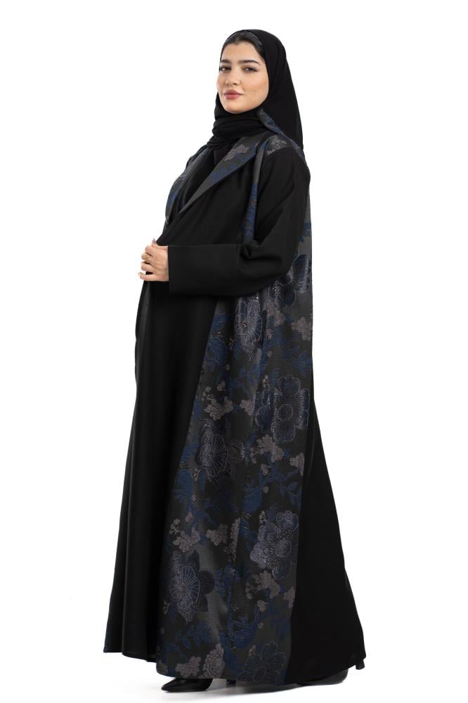 عباية نائله بتدخيلة قماش جاكار كحلي