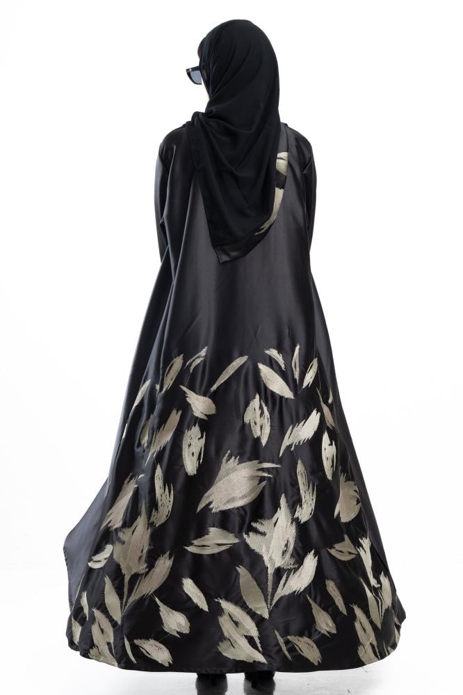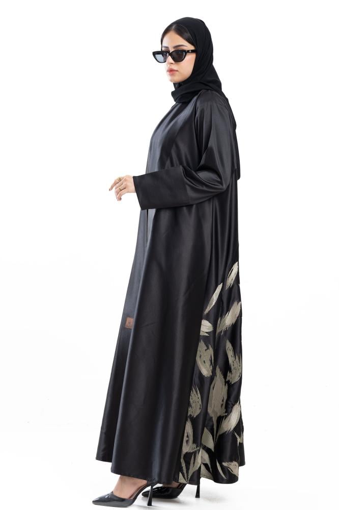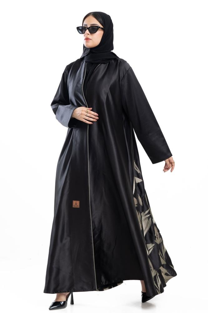 عباية وسن فخامة تنساب كالمطر منسوجة من قماش التفته الروسي الفاخر وتزدان بتطريز زيتي بدرجتين أنيقتين من خلف العباية بتفاصيل تنطق بالترف والذوق الرفيع. صممت بقصه انسيابية لتلائم كل مناسباتك. مع طرحة مجانية مطرزة من نفس العباية وجربي تنسيقها مع فستان عباية