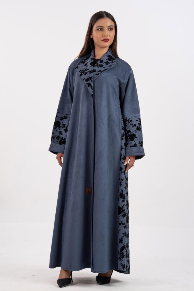 عباية هتان شتوية منسوجة من قماش الشامواه التركوازي مع تدخيلات قماش شموة جاكار برسم فاينل على الخلف وعلى الأكمام والياقة صممت لتناسب الاستخدام اليومي والطلعات تصميمها الناعم يضفي لمسة من الجاذبية والرقي مما يجعلها مثالية للإطلالات المميزة صممت بقصه انسيابية العباية ناعمة بالحركة لتلائم كل مناسباتك الشتوية. مع طرحة مجانية وجربي تنسيقها مع فستان عباية
