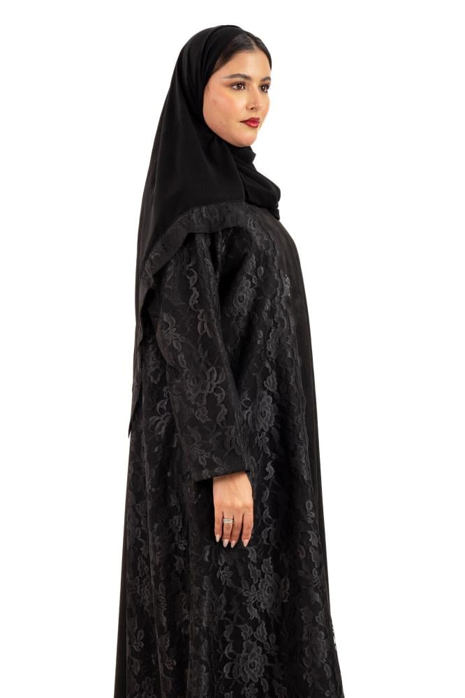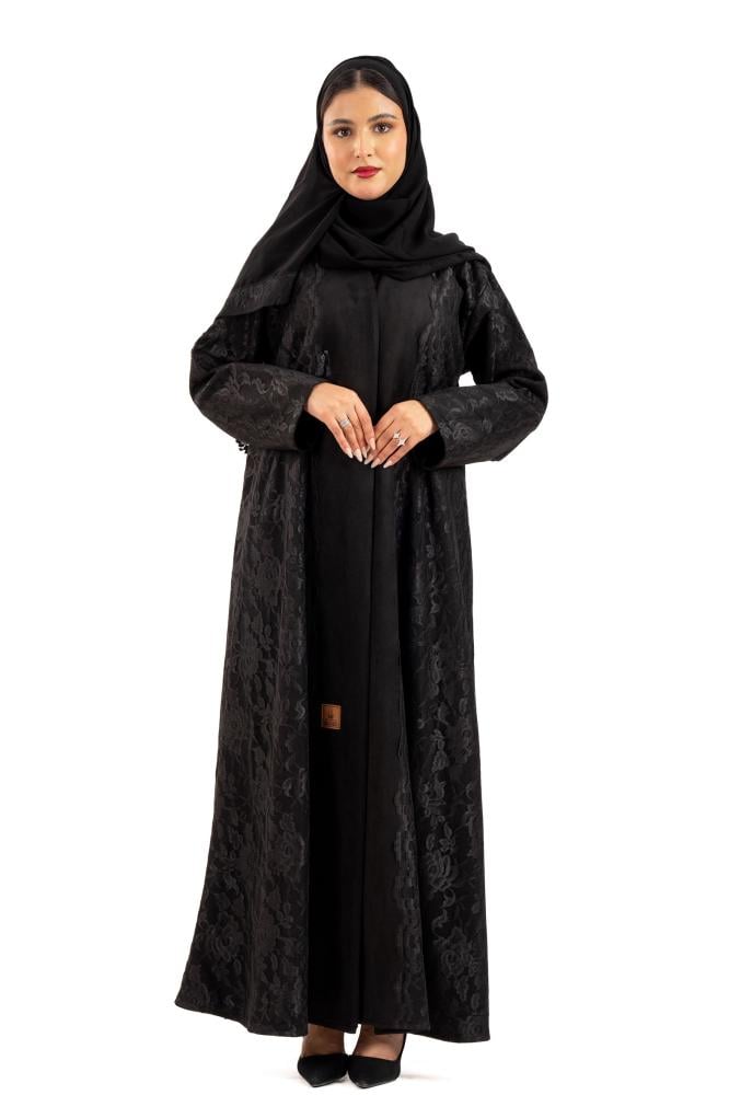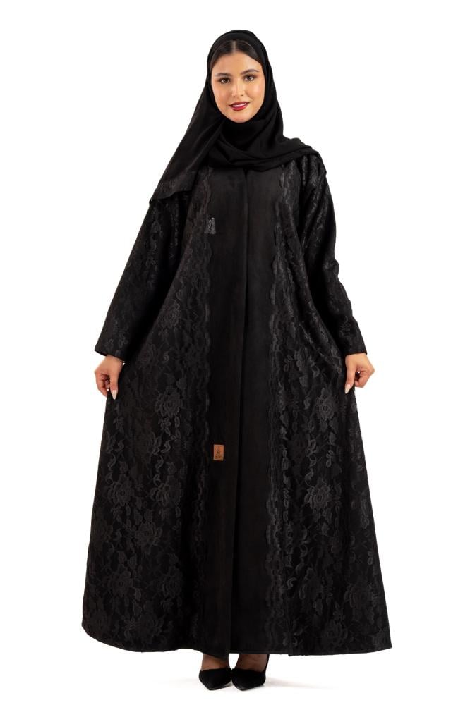 عباية ظلال شتوية منسوجة من قماش الشامواه الأسود مع تدخيلات دانتيل اندنوسبي على الأكمام والجوانب صممت لتناسب الاستخدام اليومي والطلعات تصميمها الناعم يضفي لمسة من الجاذبية والرقي مما يجعلها مثالية للإطلالات المميزة صممت بقصه انسيابية العباية ناعمة بالحركة لتلائم كل مناسباتك الشتوية. مع طرحة مجانية وجربي تنسيقها مع فستان عباية