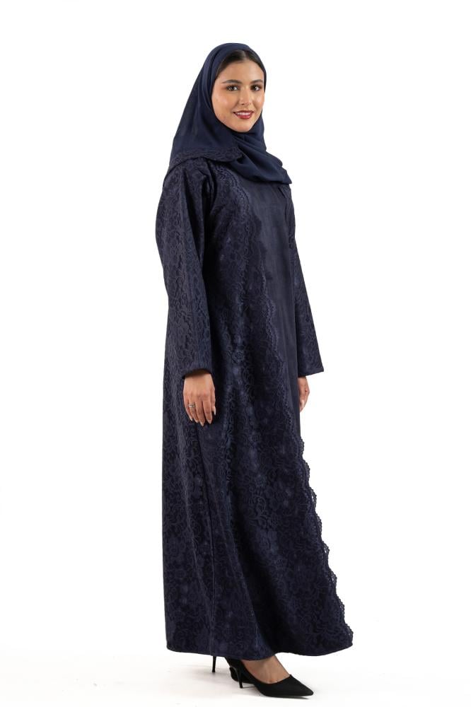 ●الاضافات: تدخيلات قماش الدنتيل الاندنوسي على الأكمام وامام العباية