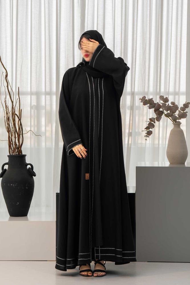 صممت بقصه انسيابية ا لتلائم كل مناسباتك. مع طرحة مجانية مطرزة من نفس العباية وجربي تنسيقها مع فستان عباية