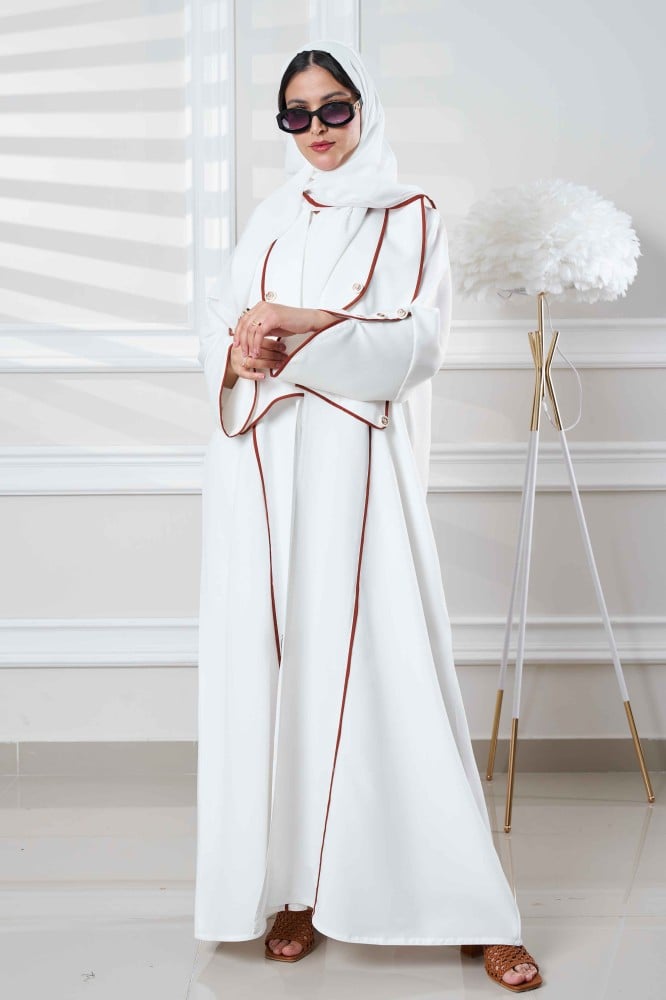 عباية مانسيرا بياقة واسعة وقيطان عسلي