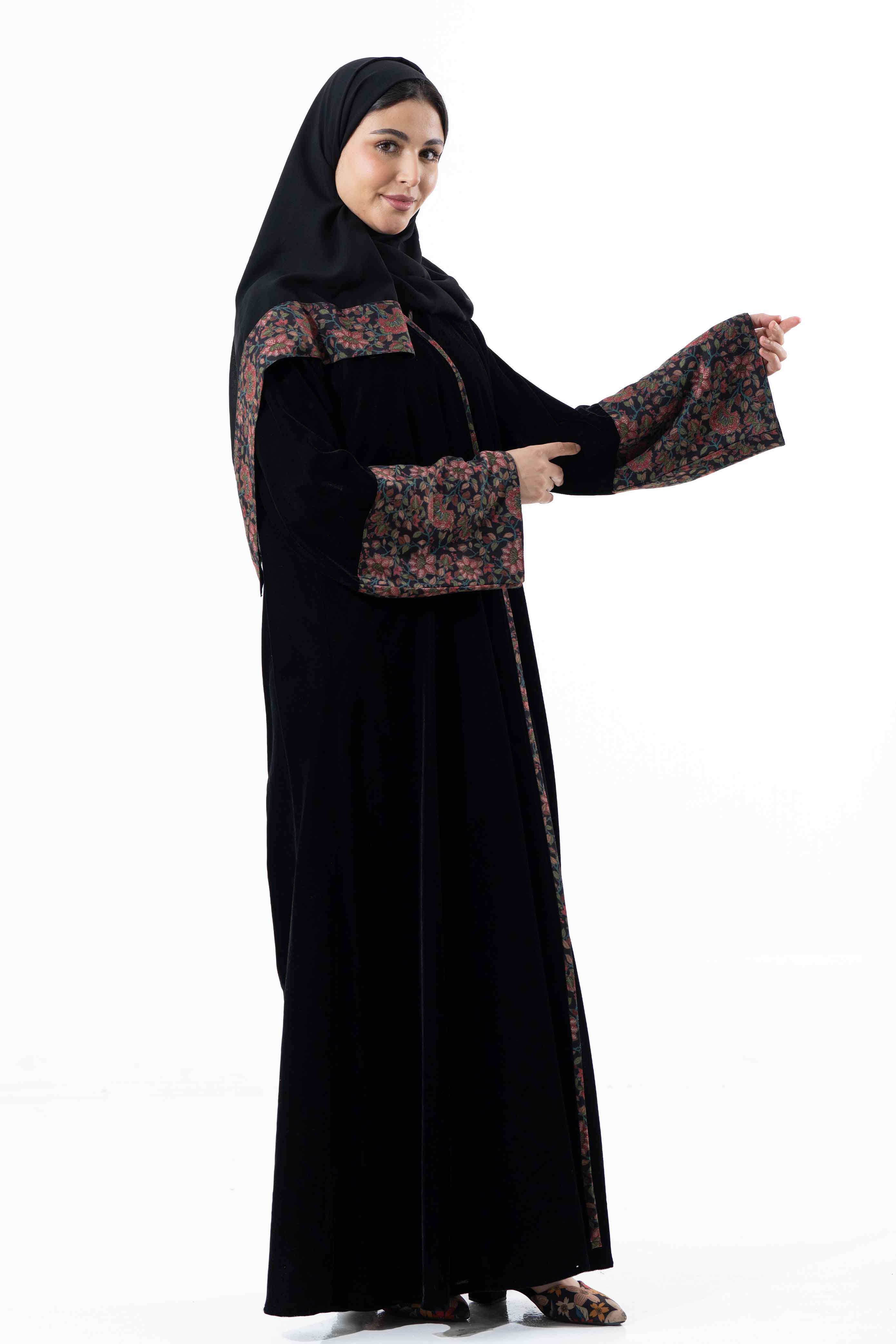 عباية شتوية بتدخيلات قماش الكشميري على اليدين والأمام