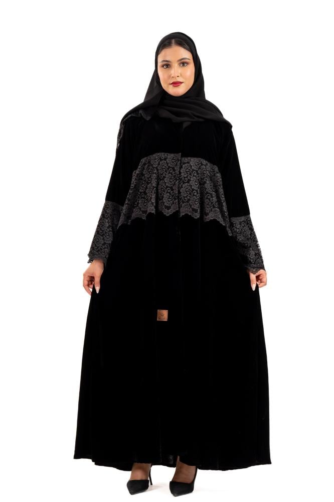 عباية حلا مخمل يدانتيل ع الصدر والكم