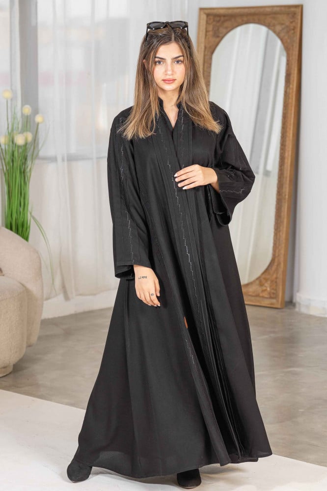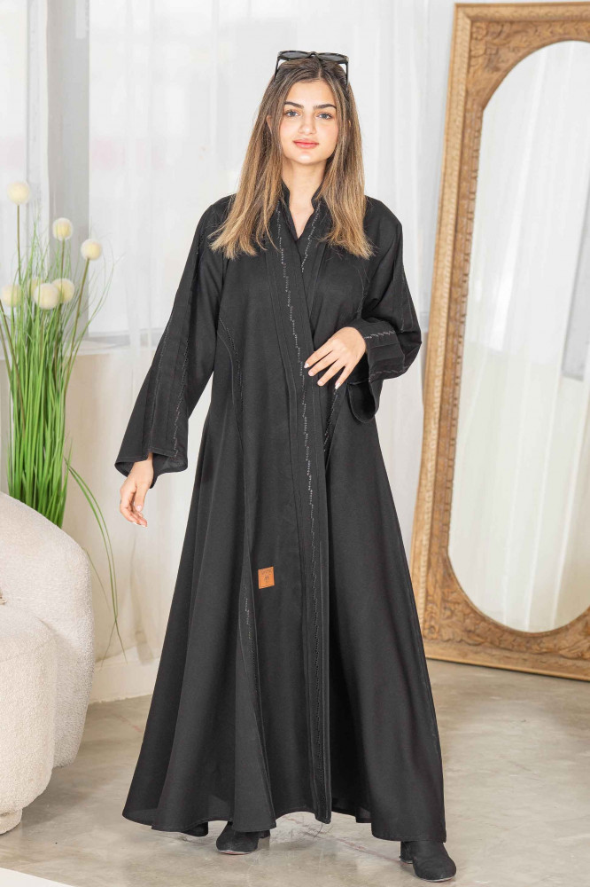 عباية كلوش بتصميم مميز مع تدخيلات تطريز اسود