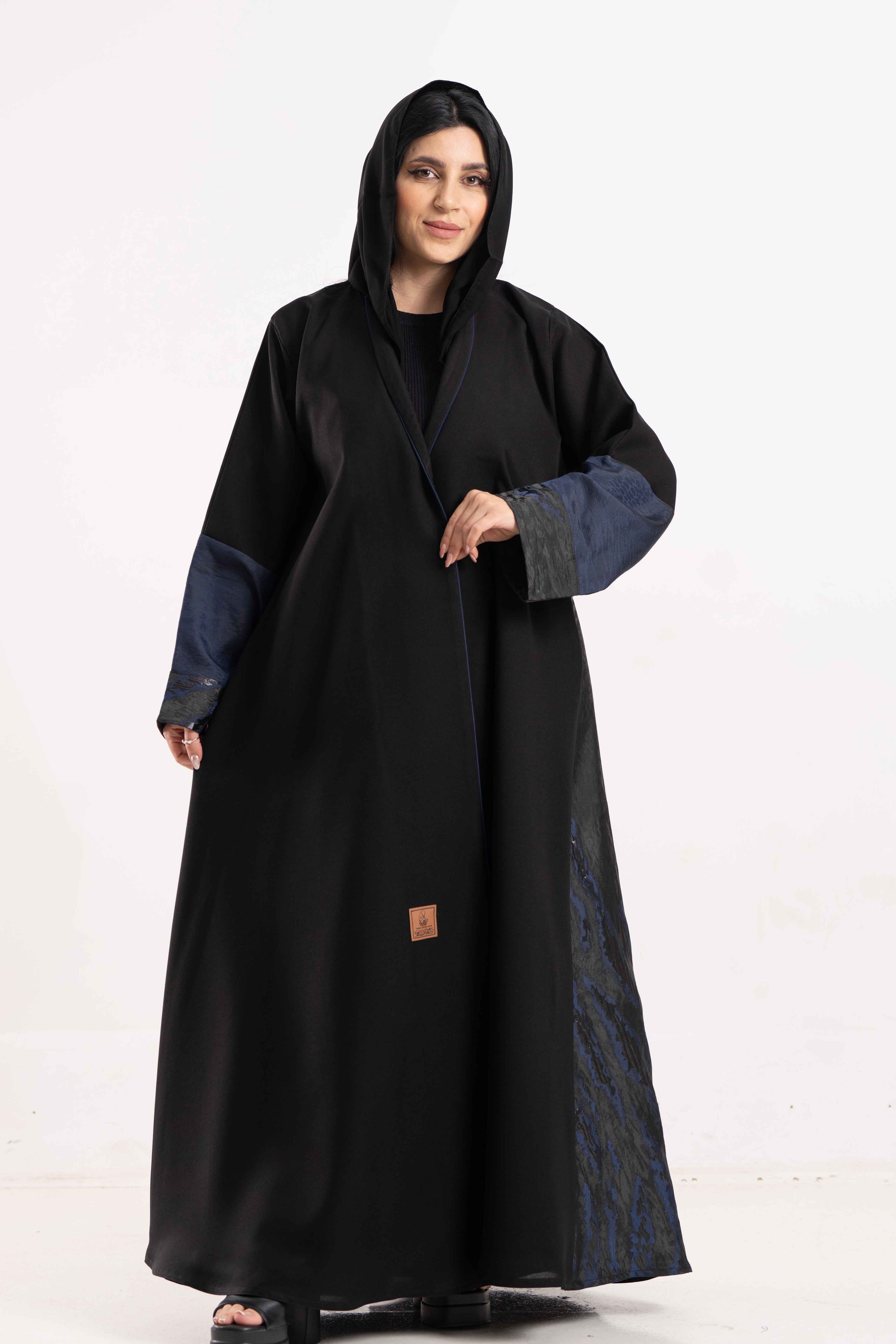 عباية كلوش فاخرة بتصميم يجمع بين الفخامة والانسيابية، مزينة بتفاصيل من قماش جاكار الأورجنز الكحلي الفاخر من الخلف والأكمام مما يضفي لمسة راقية تعكس الذوق الرفيع تصميم العباية أنيق يعزز جمال القوام ويمنحك إطلالة أنثوية مميزة تناسب مختلف المناسبات.