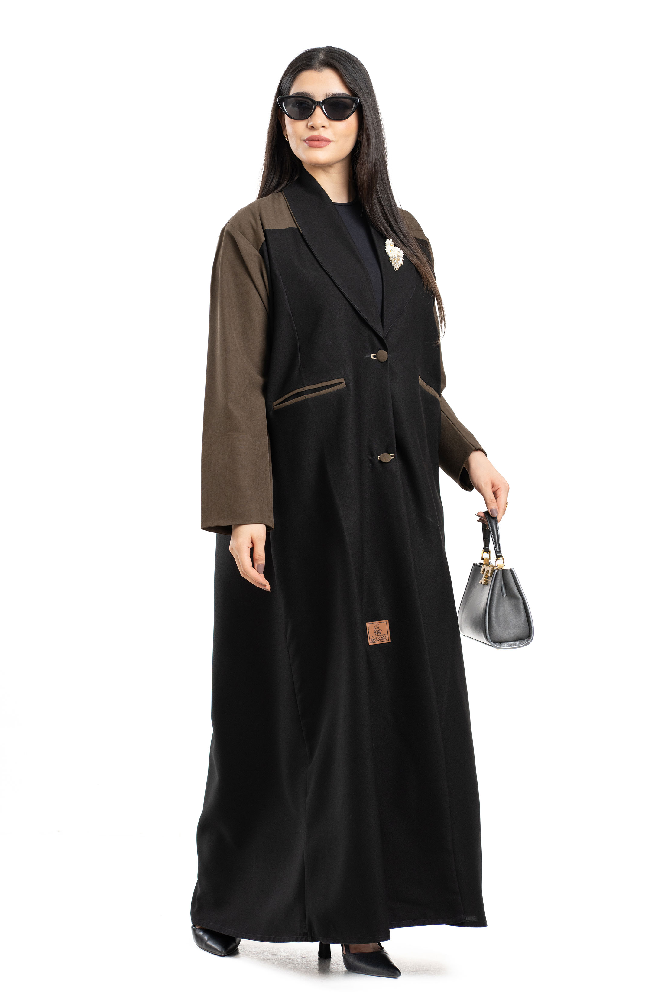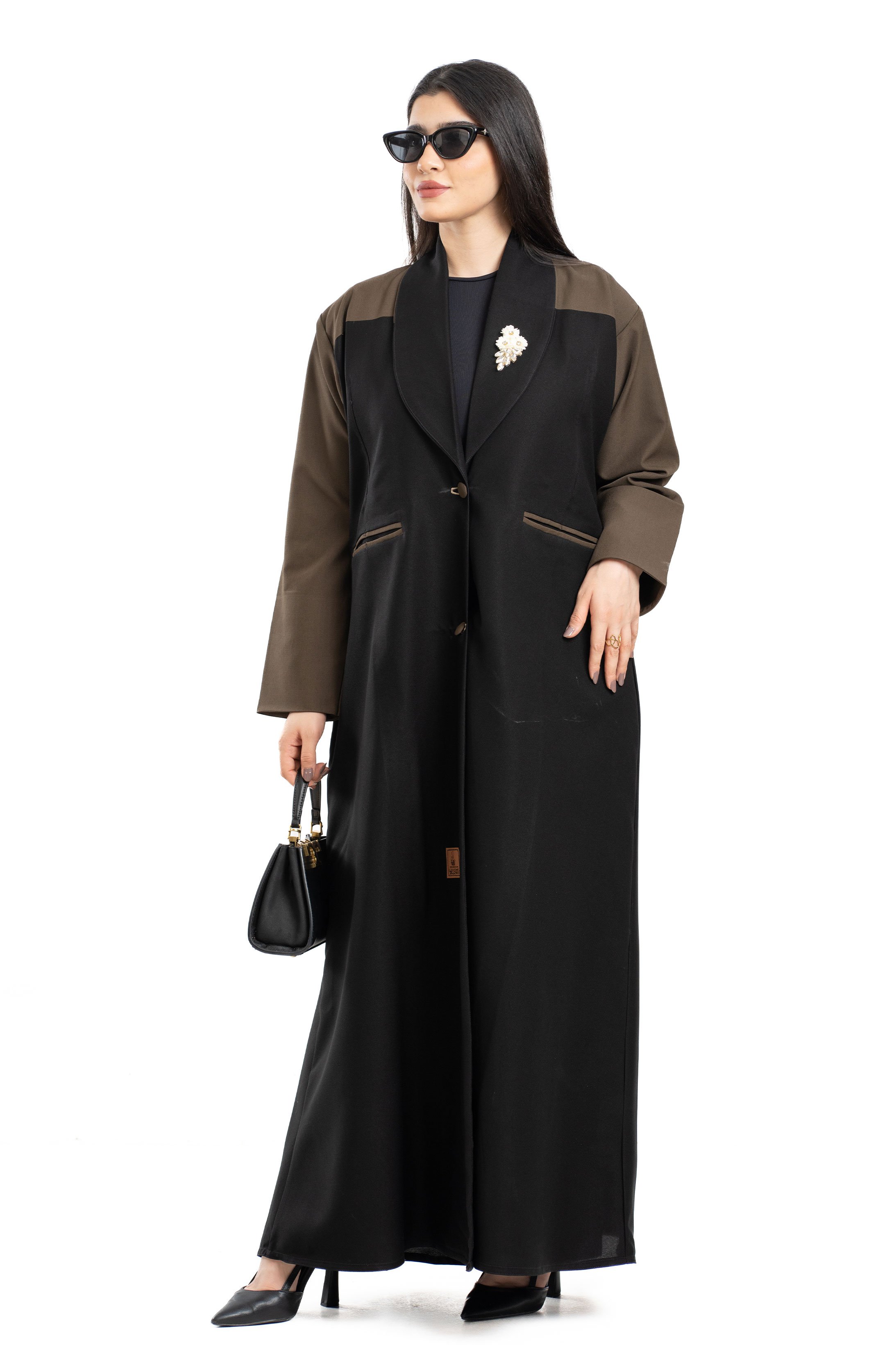 تصميم بليزر يُجيد لغة الاتزان حيث يتقاطع الأسود الفاحم بوقارٍ مخملي مع الزيتوني العميق الذي يهمس بالفخامة النادرة.