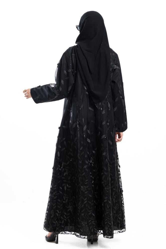 ●الاضافات: تدخيلات قماش تل مطرز ع كامل العباية واطراف الطرحة