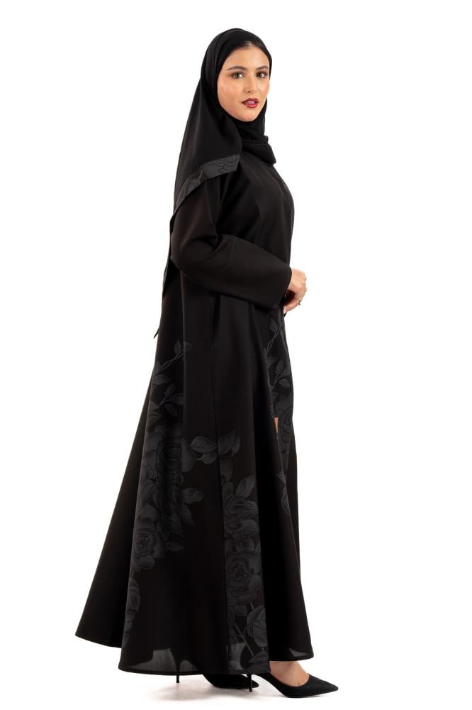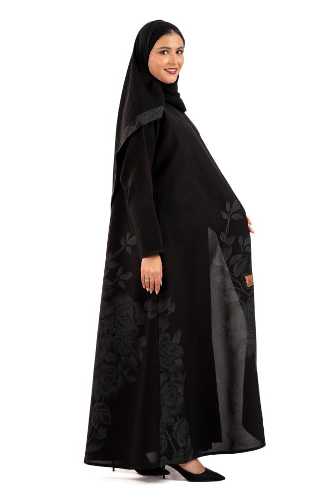 عباية عفاف منسوجة من قماش الكتان الكوري الأسود المزخرف بزخرفات فضية ناعمة صممت لتناسب الاستحدام اليومي والطلعات تصميمها الناعم يضفي لمسة من الجاذبية والرقي مما يجعلها مثالية للإطلالات المميزة صممت بقصه انسيابية العباية ناعمة بالحركة لتلائم كل مناسباتك مع طرحة مجانية وجربي تنسيقها مع فستان عباية
