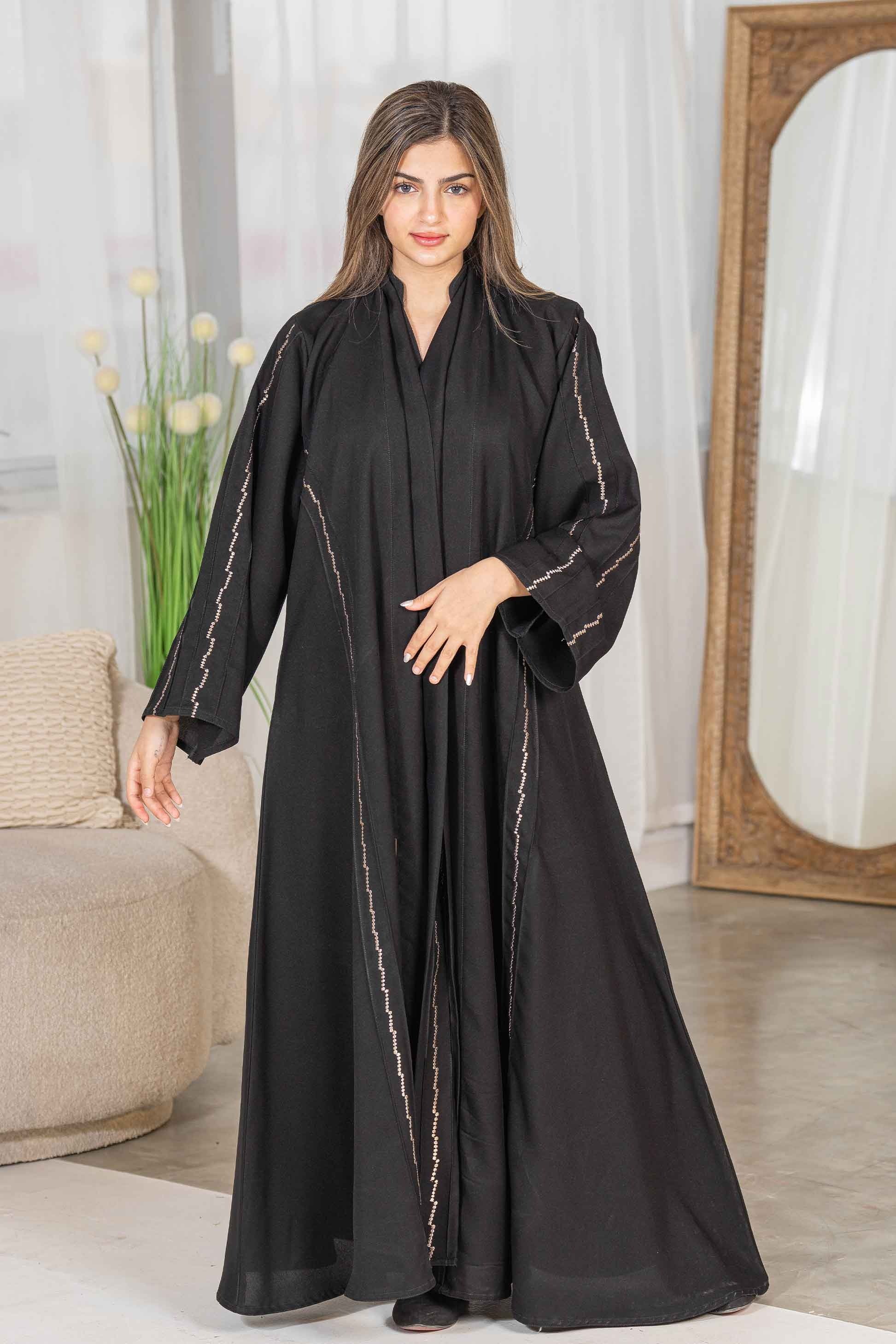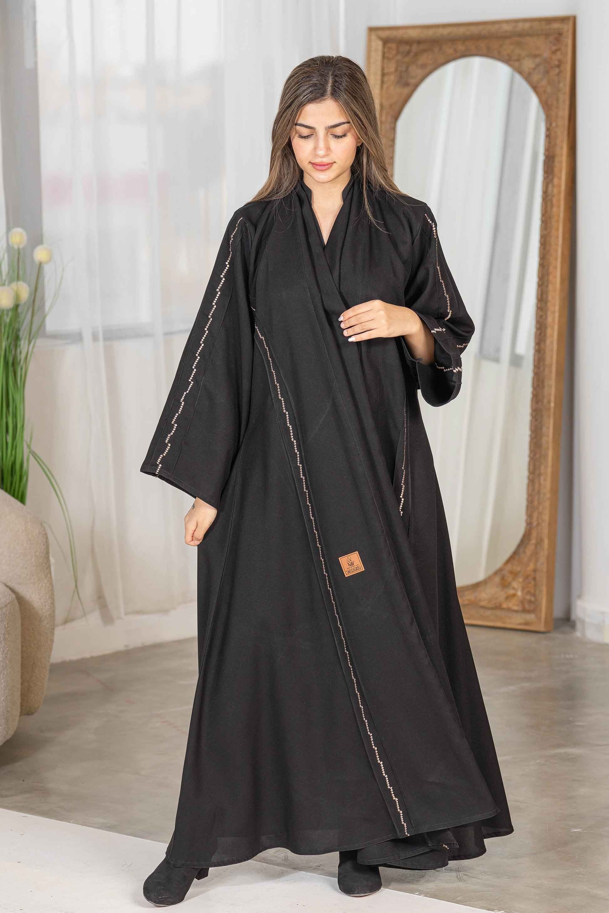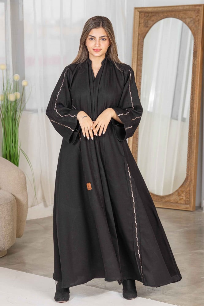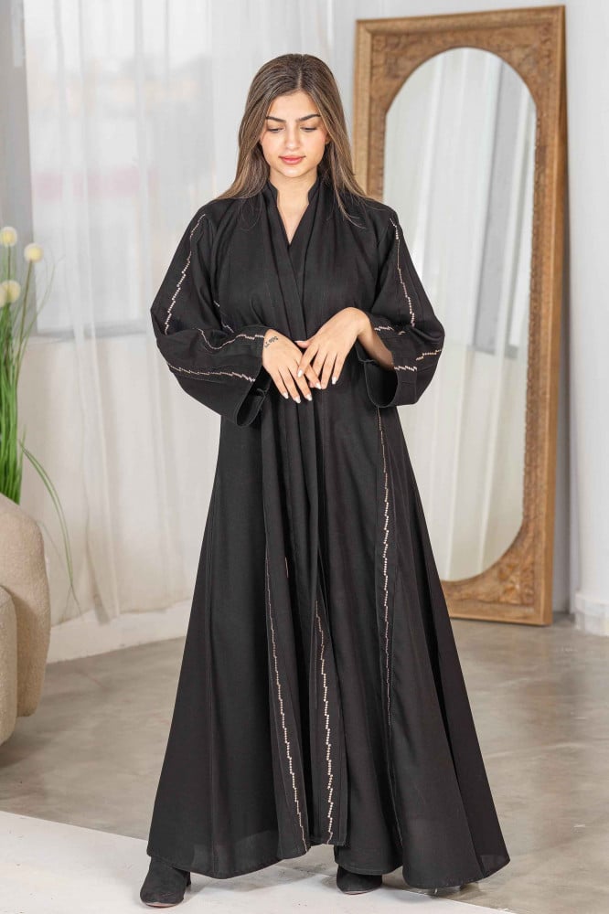 للنساء الراقيات اللواتي يبحثن عن المنتجات الأصيلة، يُقدم لك موقع عبايات منتج مميز يُضفي على مظهرك لمسة من الأنوثة والجمال ويمنحك بريقاَ لا مثيل له.والمنتج عبارة عن عباية كلوش بتصميم فريد يتخللها تطريز نحاسي، والعباية مصنوعة من قماش الكتان المميز جربي تنسيقها مع فستان عباية