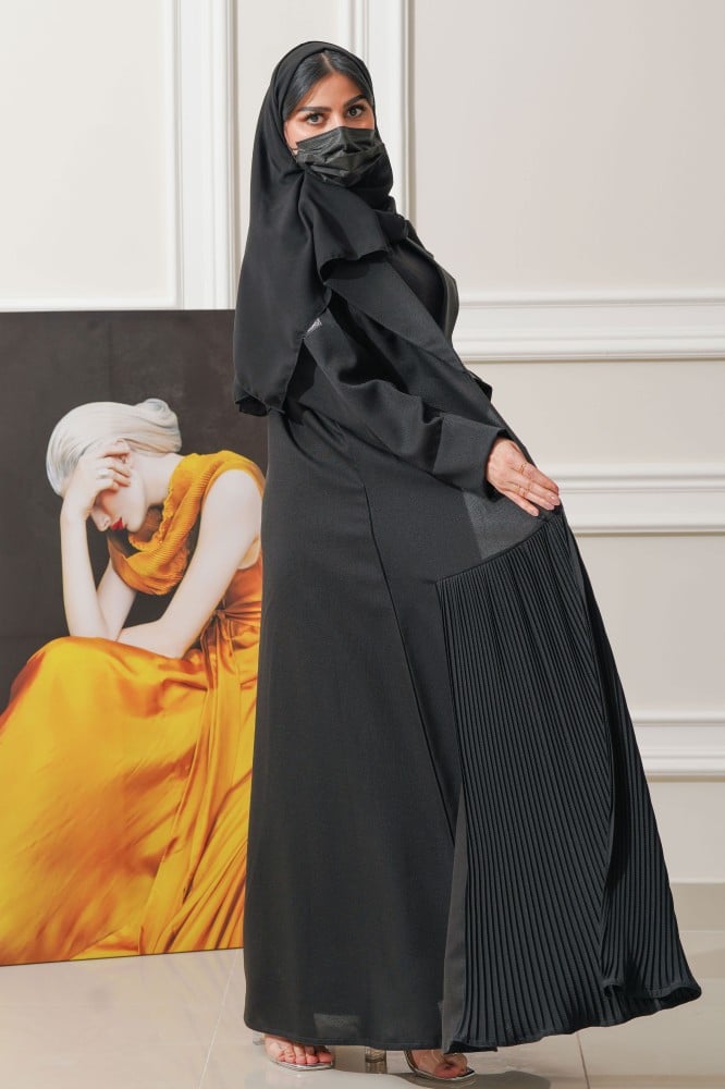 عباية سوداء ناعمة بكسرات أسفل العباية