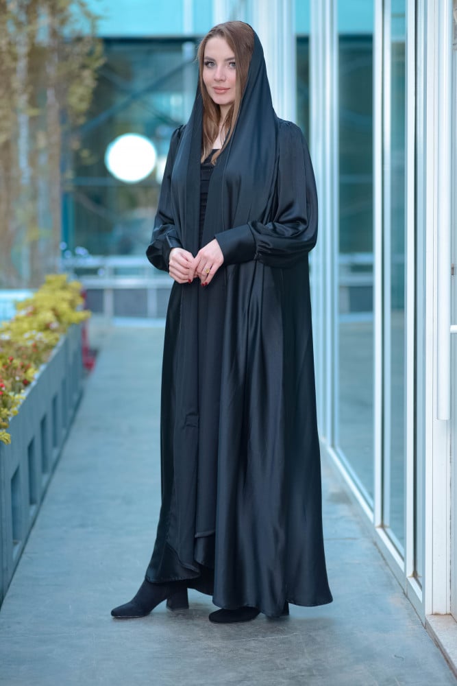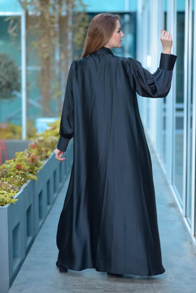 An elegant and soft classic abaya that adds femininity and beauty to your appearance. It comes with a distinctive cut and gathered sleeves. The abaya is made of soft taffeta fabric. The abaya is beautiful and suitable for university and special occasions.