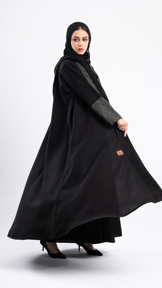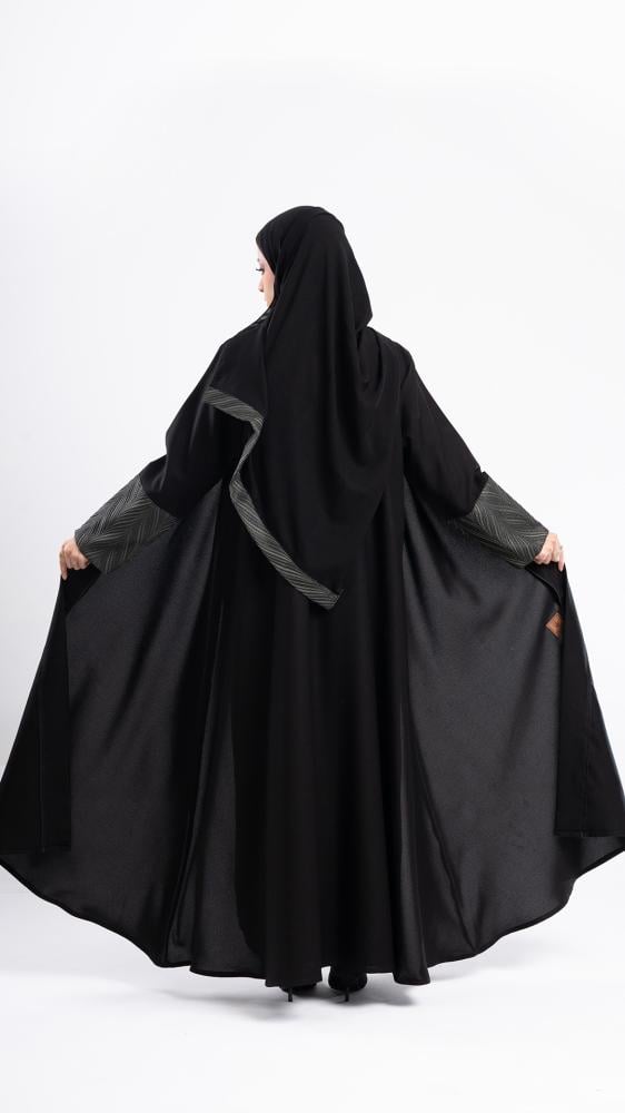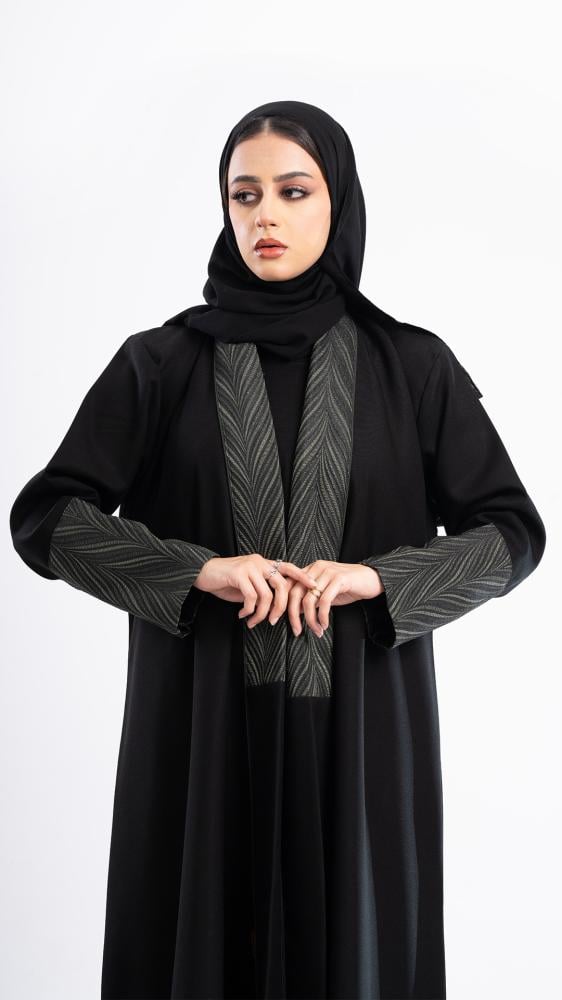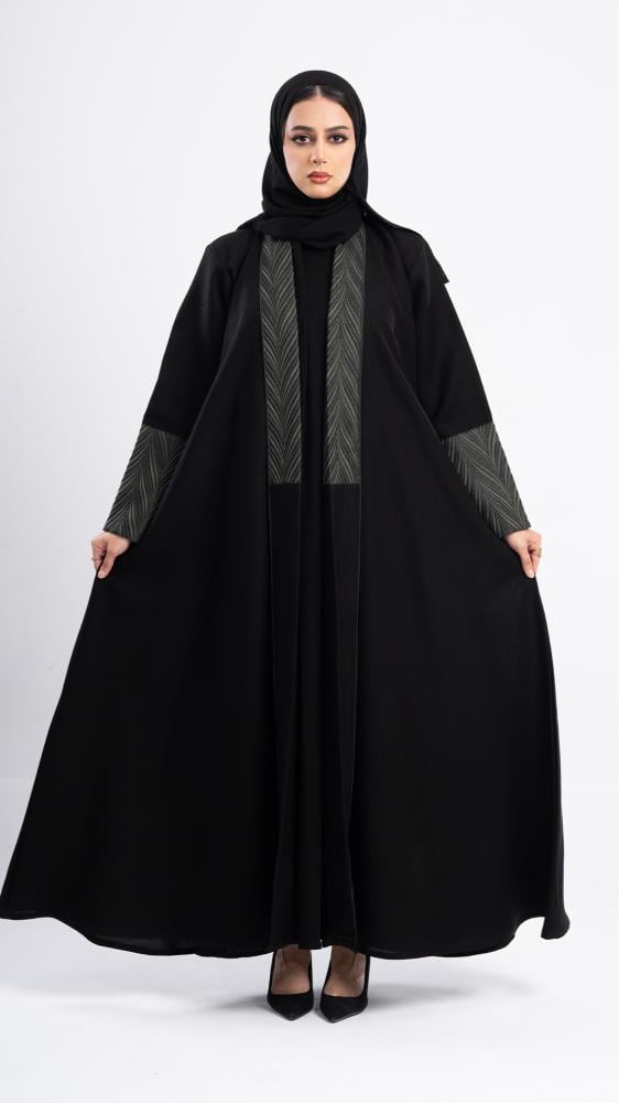 A luxurious black abaya with a classic, elegant design, distinguished by geometric oil embroidery on the chest and sleeves. A touch of luxury in classic black, adorned with delicate embroidery and dark oil sequins on the sleeves and chest, giving you a soft sparkle and irresistible elegance. Designed with a flowing cut to suit all your occasions . With a free embroidered veil from the same abaya, try coordinating it with Abaya dress